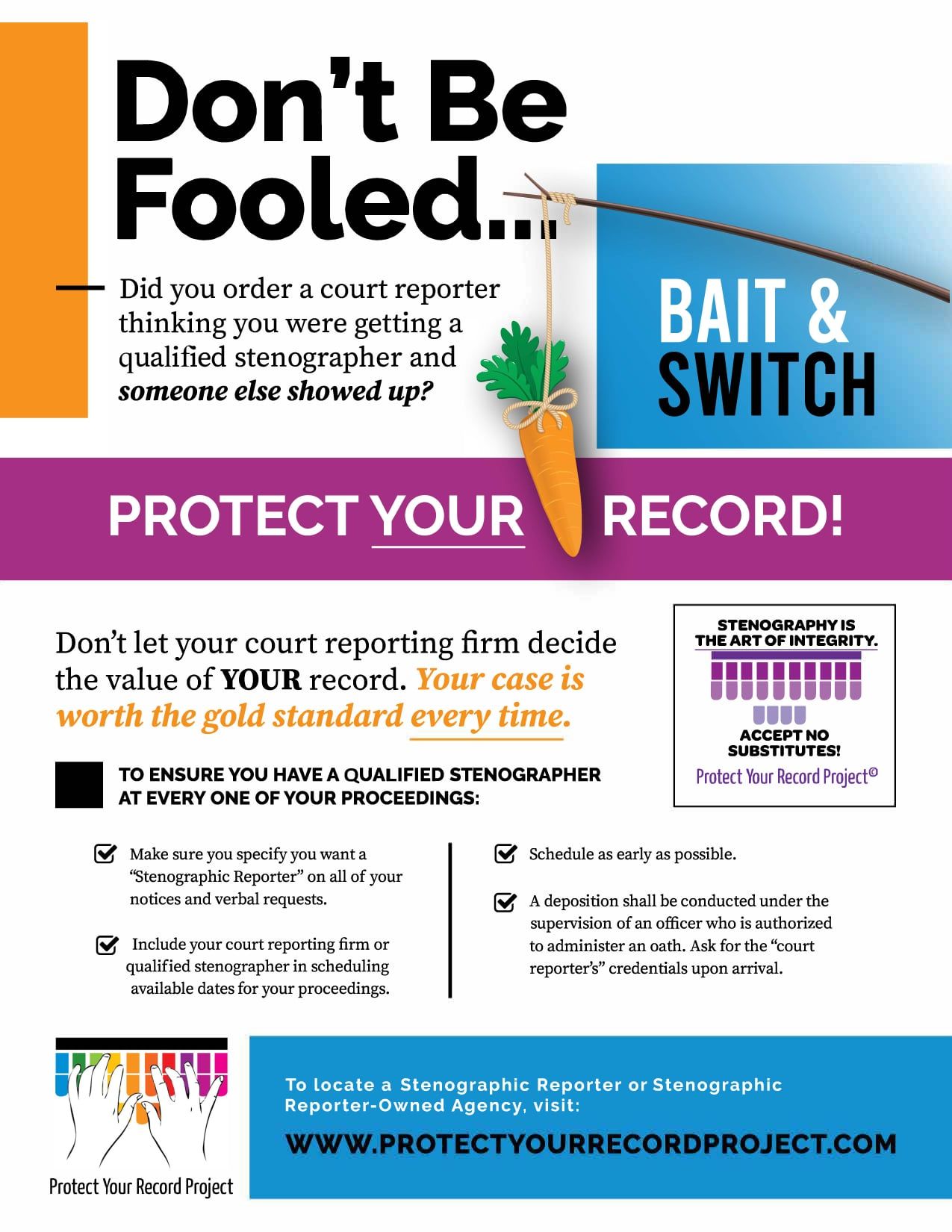 Protect Your Record Project – PYRP is a consumer education nonprofit that has a Find A Stenographer feature.